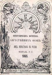 Keywords: Album of Photographic Portraits of Their Majesties and The Russia's Famous, 1865 vol.2. Title page.jpg Album of Photographic Portraits of Their Majesties and The Russia's Famous / by A Denier SPb 1865 Vol 2 Title page Альбомъ фотог афическихъ по т етовъ августѣйшихъ особъ и лицъ извѣстныхъ въ Россiи / Издаваемый Г Денье омъ въ С -Пете бу гѣ - Санкт-Пете бу г 1865 Вып 2 Титульный лист 1865 http //andcvet narod ru/sam/sam html andcvet narod ru cropped corrected Адольф Ша лемань Г ав П Ку енков PD-old-100 Title pages 1865 engravings Album of Photographic Portraits of Their Majesties and The Russia's Famous 1865-66 Adolf Charlemagne |