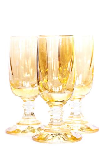 Keywords: alcohol beverage isolated celebration crystal decoration drink glass glasses three object white yellow empty