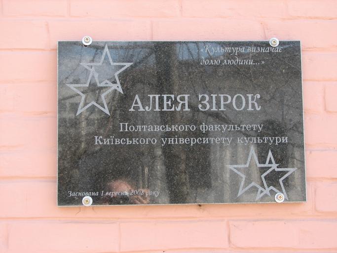 Keywords: Aleja Zirok.JPG uk Алея зі ок Полтавського факультету Київського уніве ситету культу и own Tuma26 Plaques in Poltava Hoholia Street Poltava