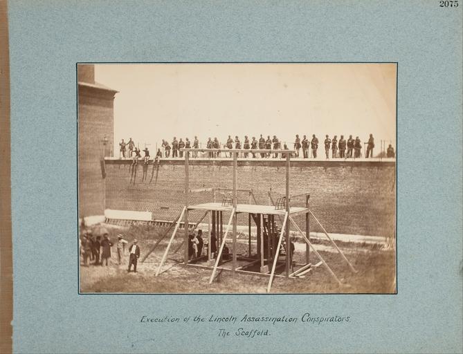 Keywords: Alexander Gardner - Execution of the Lincoln Assassination Conspirators. The Scaffold. - Google Art Project.jpg commons artist commons date commons medium commons dimensions commons institution Institution George Eastman House commons location commons references commons object_history commons exhibition_history commons credit_line commons inscriptions commons notes commons accession_number commons source commons permission commons other_versions commons zoom core title Execution of the Lincoln Assassination Conspirators The Scaffold core creator Alexander Gardner core date dateCreated 1865 core format w23 4 x h16 8 cm Image core type Photograph core rights George Eastman House Collections core format medium albumen print art artist_nationality American b Scotland art artist_birth_place Paisley Scotland art artist_death_place Washington DC art artist_date 1821/1882 c-06dbcf53 customtext from The Lincoln Conspiracy Album c-06dbcf53 customtext inscriptions recto printed on mount 2075 in ink Execution of the Lincoln Assassination Conspirators The Scaffold c-06dbcf53 customtext credit_line Museum Purchase; ex-collection of Col Arnold A Rand c-06dbcf53 customtext materials_source George Eastman House c-06dbcf53 customtext materials_extent complete c-06dbcf53 customtext inscriptions_source George Eastman House c-06dbcf53 customtext inscriptions_extent complete c-06dbcf53 customtext from_source George Eastman House c-06dbcf53 customtext from_extent complete c-06dbcf53 customtext credit_line_source George Eastman House c-06dbcf53 customtext credit_line_extent complete google display_date 1865 google is_artproject TRUE google is_gigapixel FALSE google is_secured TRUE google partner/id 0000000006dbcf53 google picasa_token OFs-A8HrQt1qh5xeCRxLWbyKj3A special url_id 9AFJgD5TbYlwGQ google partner/name George Eastman House special partner/name_no_lang George Eastman House PD-old-100-1923 1882 Alexander Gardner Google Art Project works by Alexander Gardner Scaffold execution site |