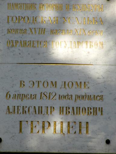 Keywords: Alexander Herzen's Birthplace(2).jpg en The memorial on the house in which was born on April 6 1812 the famous Russian writer Alexander Herzen ru Π Π΅ΠΌΠΎΡ ΠΈΠ°Π»ΡΠ½ΡΠΉ Π·Π½Π°ΠΊ Π½Π° Π΄ΠΎΠΌΠ΅ Π² ΠΊΠΎΡΠΎΡ ΠΎΠΌ Ρ ΠΎΠ΄ΠΈΠ»ΡΡ 6 Π°ΠΏΡ Π΅Π»Ρ 1812 Π·Π½Π°ΠΌΠ΅Π½ΠΈΡΡΠΉ Ρ ΡΡΡΠΊΠΈΠΉ ΠΏΠΈΡΠ°ΡΠ΅Π»Ρ ΠΠ»Π΅ΠΊΡΠ°Π½Π΄Ρ ΠΠ²Π°Π½ΠΎΠ²ΠΈΡ ΠΠ΅Ρ ΡΠ΅Π½ own Vladimir OKC 2010-09-11 Alexander Herzen Plaques in Moscow Memorial wall signs in Moscow Maxim Gorky Literature Institute |