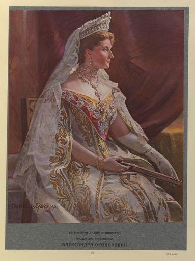 Keywords: Alexandra Feodorovna after Samokish-Sudkovskaya.jpg Alexandra Feodorovna Empress of Russia Empress Consort of Nikolai II Emperor of Russia 4th Daughter of Ludwig IV Grand Duke of Hesse By Rhine http //www royalcollection org uk/collection/614644/alexandra-feodorovna-empress-of-russia-empress-consort-of-nikolai-ii-emperor-of after 1908 After Samokitschz-Sudkovskaya E PD-RusEmpire <gallery>File LaEmperatrizAlejandra--fallofromanoffsh00londrich jpg</gallery> Alexandra Fyodorovna in court dress Files uploaded by Shakko from various sources Profile portraits of Russian rulers Portrait paintings after photographs Images from the Royal Collection of the United Kingdom Engravings in the Royal Collection of the United Kingdom Elena Petrovna Samokish-Sudkovskaya |