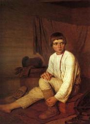 | Keywords: Alexey Venetsianov 14.jpeg К естьянский мальчик надевающий лапти creator Alexey Venetsianov oil canvas cm 37 28 object history Provenance unknown credit line http //venecianov ru/gallery4/ s 1820 PD-old-100 Other versions PD-old-100 Genre paintings by Alexey Venetsianov Children in Russian art Genre paintings in the Russian Museum Files uploaded by Shakko from various sources Bast shoes Kosovorotka Male national costumes of Russia in art | ||||