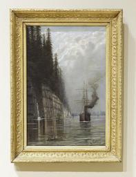| Keywords: Alexis Jean Fournier - Off the Coast (Lake Superior) - 2012.45 - Minneapolis Institute of Arts.jpg sailing vessel with drawn sails; trolling in calm water towards viewer; at L rock face shoreline crested with pine trees; gold frame 29 3/4 x 21 3/4 in 75 57 x 55 25 cm outer frame 2012 45 https //api artsmia org/images/106831/4131/large jpg Q1700481 Oil on canvas Off the Coast Lake Superior https //collections artsmia org/index php page detail id 106831 Q20891778 | ||||