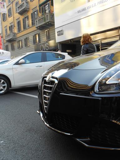 Keywords: Alfa Romeo Giulietta (scudetto).jpg en Anterior of Alfa Romeo Giulietta it Anteriore di un'Alfa Romeo Giulietta particolare del paraurti e portatarga con scudetto sospeso e led dei gruppi ottici anteriori own Pava Cc-zero Automobile air intakes Alfa Romeo Giulietta 2010 Automobiles in Milan Two automobiles Black automobile body parts |