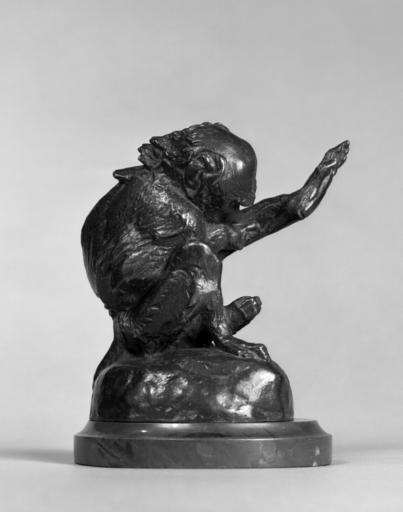 | Keywords: Alfred Jacquemart - Monkey - Walters 542496 - Right Side.jpg Although Jacquemart studied with the painter Paul Delaroche French 1797-1856 and the decorative artist Jean-Baptiste-Jules Klagmann French 1810-67 he was deeply influenced by Antoine-Louis Barye French 1796-1875 and modeled numerous animal subjects in addition to large-scale commemorative works In this bronze a monkey is picking a flea from its armpit century 19 bronze with patina cm 10 16 approx accession number 54 2496 13462 Mrs E T Mudge III date and mode of acquisition unknown Walters Art Museum Gift of Mrs E T Mudge III in memory of E T Mudge III 1972 place of origin France Walters Art Museum license 19th-century bronze statues 19th-century sculptures in the United States Alfred Jacquemart Bronze sculptures in the United States Sculptures in the Walters Art Museum Statues of monkeys |