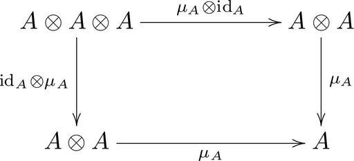 Keywords: Algebra-Associativity.svg Die Multiplikation <math>\mu_A</math> einer Algebra <math>A</math> ist genau dann assoziativ wenn dieses Diagramm kommutiert Own 2006-08-11 Markus Schmaus Public Domain File Algebra-Associativity png Quelltext Siehe wikipedia de Benutzer Markus Schmaus/Kommutatives Diagramm <pre> latex \documentclassa4paper article \usepackagedvips matrix arrow ps color line curve frame xy \usepackage diagxye \thispagestyle empty \begin document \bfig \Square A \otimes A \otimes A` A \otimes A` A \otimes A` A ; \mu_A \otimes \mathrm id _A` \mathrm id _A \otimes \mu_A` \mu_A` \mu_A \efig \end document </pre> Commutative diagrams of binary operations Commutative squares associativity Images with LaTeX source code |