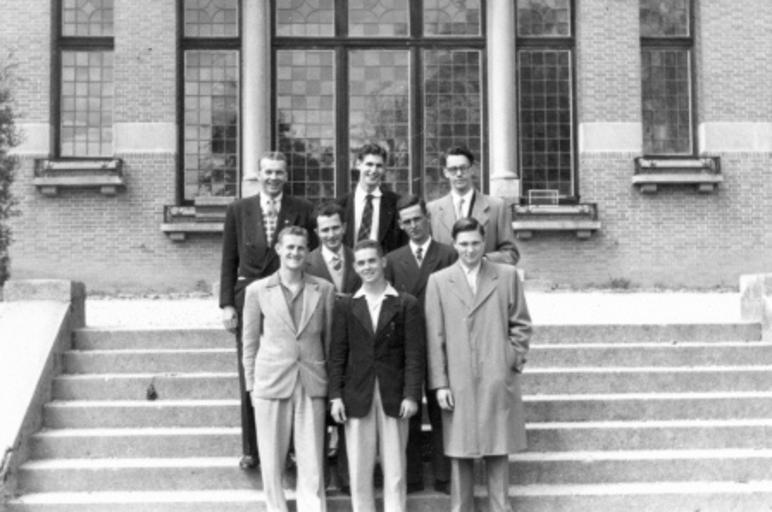 Keywords: pax algeria john howard yoder albert meyer paxalgeriajohnhowardyoderalbertmeyer wayne lapp waynelapp robert weaver robertweaver walter smeltzer waltersmeltzer donald reist donaldreist peter nussbaum peternussbaum dwight wiebe dwightwiebe mennonite board of missions mennoniteboardofmissions blackandwhite monochrome black and white Caption: 1955. A PAX team preparing to depart for Algeria from Valdoie (territorie de Belfort) France. Left to right-Front: Wayne Lapp, Robert Weaver, Walter Smeltzer (leader). Second row: Donald Reist, Peter Nussbaumer. Third row: Dwight Wiebe, Albert Meyer, John Howard Yoder. Citation: Mennonite Board of Missions. Photographs. Algeria Pax, 1955-1963. IV-10-7.2 Box 1 folder 27, photo #37. Mennonite Church USA Archives - Goshen. Goshen, Indiana. Caption: 1955. A PAX team preparing to depart for Algeria from Valdoie (territorie de Belfort) France. Left to right-Front: Wayne Lapp, Robert Weaver, Walter Smeltzer (leader). Second row: Donald Reist, Peter Nussbaumer. Third row: Dwight Wiebe, Albert Meyer, John Howard Yoder. Citation: Mennonite Board of Missions. Photographs. Algeria Pax, 1955-1963. IV-10-7.2 Box 1 folder 27, photo #37. Mennonite Church USA Archives - Goshen. Goshen, Indiana. |