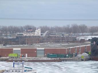 Keywords: Algoma Navigator moored in the channel to Toronto's turning basin, 2014 01 01 -a.jpg The Algoma Navigator moored in the channel to Toronto's turning basin If you look closely you can see this vessel has a long boom Self-unloading bulk-carriers can swing out their booms to unload their cargoes Their holds have V-shaped bottoms with a conveyor belt below them When doors at the bottom of a hold opens the cargo starts to drop to the lower conveyor belt The cargo is carried to some kind of lifting devices which places it on the upper conveyor belt on the boom Older bulk carriers that are not self-unloading still carry cargo but self-unloading vessels are now more common Lake vessels which are not exposed to salt water can remain in service for decades longer than a saltie and a considerable number of older vessels have been retrofitted with self-unloading machinery If you look closely you can see a logo on the smokestack of a bear -- the logo of Algoma Central one of larger Canadian shipping lines own 2014-01-01 Geo Swan <span class signature-talk >talk</span> 43 38 56 68 N 79 21 51 15 W source exif_heading 2014 in water transport in Toronto Freighters in Toronto Algoma Navigator ship 1967 Frozen Toronto harbour Eastern Gap Taken with Panasonic Lumix DMC-ZS10 Photographs by Geo Swan ImageNote 1 1266 1295 110 80 4320 3240 2 Algoma Central uses a logo of a bear ImageNoteEnd 1 ImageNote 2 1856 1413 2426 203 4320 3240 2 The vessel's long self-unloading boom ImageNoteEnd 2 ImageNote 3 1510 1257 325 160 4320 3240 2 Ship's bridge ImageNoteEnd 3 ImageNote 4 3987 1645 316 1050 4320 3240 2 The bows of the Algoma Progress ImageNoteEnd 4 ImageNote 5 1190 1240 249 245 4320 3240 2 Smokestack ImageNoteEnd 5 |