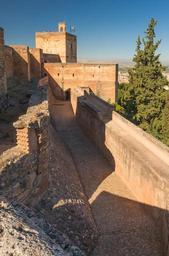 Keywords: alhambra grenada spain fortress castle buildings rampart wall historical landmark famous destinations trees nature outside stone architecture