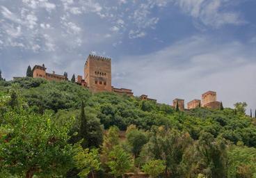 Keywords: Castle Granada Spain granada alhambra spain landmark tree tower historical travel walls sierra
