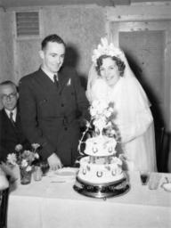 Keywords: australian war memorial australianwarmemorial wedding wedding cake weddingcake bride groom royal australian air force royalaustralianairforce raaf blackandwhite monochrome indoor black and white Pilot Officer (PO) Robert Lindsay Wallace of Haberfield, NSW, was married to WAAF Corporal Alice Patricia Williams of London, at Christ Church, Woburn Square. PO Wallace, an airgunner, met his wife who is a WAAF wireless operator whilst stationed in Norfolk, England. They are cutting the wedding cake at the wedding reception. Rights Info: No known copyright restrictions. This photograph is from the Australian War Memorial's collection www.awm.gov.au Persistent URL: cas.awm.gov.au/photograph/UK3129 Pilot Officer (PO) Robert Lindsay Wallace of Haberfield, NSW, was married to WAAF Corporal Alice Patricia Williams of London, at Christ Church, Woburn Square. PO Wallace, an airgunner, met his wife who is a WAAF wireless operator whilst stationed in Norfolk, England. They are cutting the wedding cake at the wedding reception. Rights Info: No known copyright restrictions. This photograph is from the Australian War Memorial's collection www.awm.gov.au Persistent URL: cas.awm.gov.au/photograph/UK3129