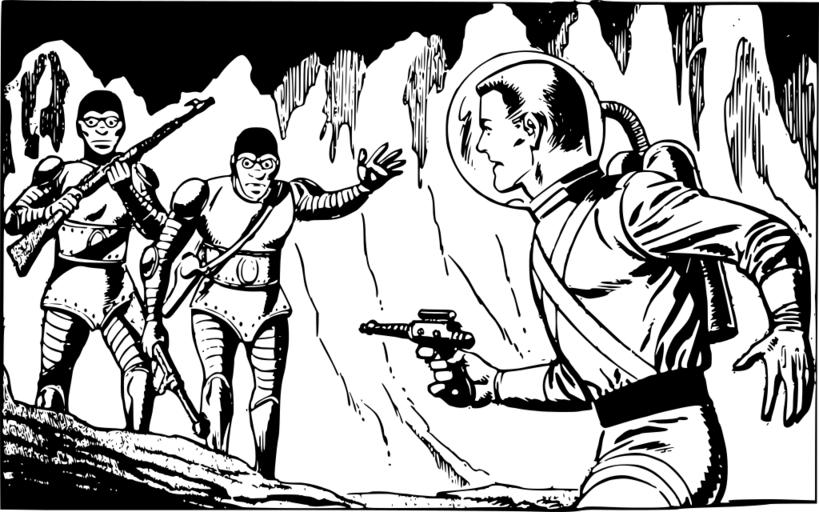 Keywords: alien blaster defense futurism gun hero laser monster retro science fiction space spacesuit