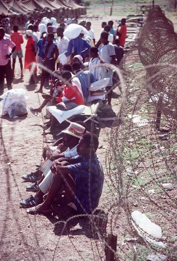 Keywords: ALIEN MIGRANT INTERDICTION OPERATIONS DVIDS1080574.jpg en Guantanamo Bay Cuba Dec 15 --Haitians pass the day away awaiting processing in a tent city at the naval base Guantanamo Bay Cuba USCG photo by PA3 Eric Eggen 1991-12-15 https //www dvidshub net/image/1080574 1080574 2013-12-11 18 56 GUANTANAMO BAY CU PD-USGov Guantanamo Bay Images from DoD uploaded by Fæ |