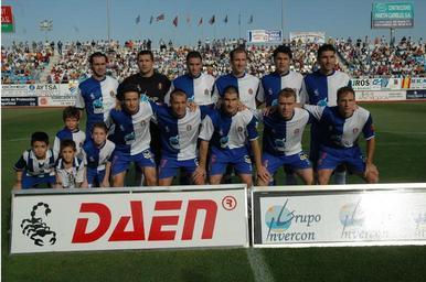 Keywords: Alineacion del Lorca.jpg Los jugadores posan en un partido en casa Own Awuachumele Lorca Deportiva