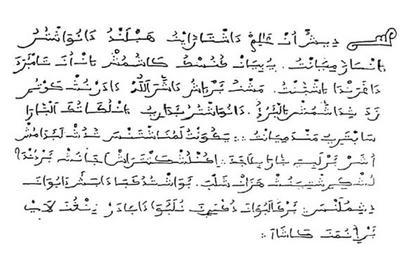 | Keywords: Aljamiado.png Aljamiado text spanish written by arabic characters Author mancebo de Arévalo Date c 16th century Ejemplo de texto aljamiado de una obra del Mancebo de Arévalo El pasaje es una invitación dirigida a los moriscos o criptomusulmanes españoles para que sigan cumpliendo con las prescripciones islámicas a pesar de las prohibiciones legales y para que disimulen y se protejan mostrando adhesión pública a la fe cristiana Transcripción con la ortografía aproximada del castellano de la época <blockquote>Dixo un alim ulema d'este rreyno hablando de nuestro encerramiento «Yo bien conozco que somos en una temporada de grande espanto mas no por eso dexara Allah de darnos cautoriçada castigo si dexamos el pro'o el pro la ventaja de nuestro poderío en lo que toca al preçeptado mandamiento Y a quanto l'amonestança el disimulo la taqiyya todos la podemos usar por la bía prebilejiada y con los cantares ajenos por donde los christianos hacen salva pues todo cabe debaxo de buena disimulança porque la buena doctrina no la puede bedar ninguna ley por inumana que sea» </blockquote> PD-old-100 Arabic texts Mediaeval Castilian Moriscos Islam in Spain Aljamiado Castilian Arabic alphabet Arabic script Arabic script in non-Arabic languages |