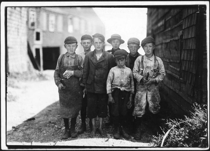 | Keywords: nara:arcid=523450 u.s. national archives usnationalarchives lewis hine lewishine blackandwhite groupshot people monochrome photo border black and white Original Caption: All these boys are cutters in a Canning Co, August 1911 U.S. National Archives’ Local Identifier: 102-LH-2420 Photographer: Hine, Lewis Subjects: Child Labor National Child Labor Committee Working Conditions Factory Persistent URL: research.archives.gov/description/523450 Repository: Still Picture Records Section, Special Media Archives Services Division (NWCS-S), National Archives at College Park, 8601 Adelphi Road, College Park, MD, 20740-6001. For information about ordering reproductions of photographs held by the Still Picture Unit, visit: www.archives.gov/research/order/still-pictures.html Reproductions may be ordered via an independent vendor. NARA maintains a list of vendors at www.archives.gov/research/order/vendors-photos-maps-dc.html Access Restrictions: Unrestricted Use Restrictions: Unrestricted Original Caption: All these boys are cutters in a Canning Co, August 1911 U.S. National Archives’ Local Identifier: 102-LH-2420 Photographer: Hine, Lewis Subjects: Child Labor National Child Labor Committee Working Conditions Factory Persistent URL: research.archives.gov/description/523450 Repository: Still Picture Records Section, Special Media Archives Services Division (NWCS-S), National Archives at College Park, 8601 Adelphi Road, College Park, MD, 20740-6001. For information about ordering reproductions of photographs held by the Still Picture Unit, visit: www.archives.gov/research/order/still-pictures.html Reproductions may be ordered via an independent vendor. NARA maintains a list of vendors at www.archives.gov/research/order/vendors-photos-maps-dc.html Access Restrictions: Unrestricted Use Restrictions: Unrestricted |