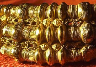Keywords: Ållebergskragen kopia 2011-03-03 bild 1.jpg en Detail of a copy of Ållebergskragen i e The golden collar of Ålleberg that since 1994 is shown in the exhibition Forntid på Falbygden i e Prehistory in the Falbygden area at Falbygdens museum in Falköping Västergötland Sweden Ållebergskragen was found in 1827 at the northen slope of the table-mountain Ålleberg Karleby Parish Vartofta Hundred Västergötland Sweden The golden collar belongs to the Migration period sv Detalj av kopia av Ållebergskragen som sedan 1994 visas i utställningen Forntid på Falbygden på Falbygdens museum i Falköping Ållebergskragen hittades 1827 vid platåberget Ållebergs norra brant i Karleby socken i gamla Ållebergs fjärding i Vartofta härad i Västergötland i Sverige Guldhalskragen dateras till folkvandringstid own Gunnar Creutz Achird 2011-03-03 Cc-zero Ållebergskragen Forntid på Falbygden permanent exhibition Photos of prehistoric archaeology by User Achird CC0 1 0 Files by Gunnar Creutz |