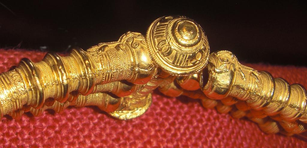 Keywords: Ållebergskragen kopia 2011-03-03 bild 2.jpg en Detail of a copy of Ållebergskragen i e The golden collar of Ålleberg that since 1994 is shown in the exhibition Forntid på Falbygden i e Prehistory in the Falbygden area at Falbygdens museum in Falköping Västergötland Sweden Ållebergskragen was found in 1827 at the northen slope of the table-mountain Ålleberg Karleby Parish Vartofta Hundred Västergötland Sweden The golden collar belongs to the Migration period sv Detalj av kopia av Ållebergskragen som sedan 1994 visas i utställningen Forntid på Falbygden på Falbygdens museum i Falköping Ållebergskragen hittades 1827 vid platåberget Ållebergs norra brant i Karleby socken i gamla Ållebergs fjärding i Vartofta härad i Västergötland i Sverige Guldhalskragen dateras till folkvandringstid own Gunnar Creutz Achird 2011-03-03 Cc-zero Ållebergskragen Forntid på Falbygden permanent exhibition Photos of prehistoric archaeology by User Achird CC0 1 0 Files by Gunnar Creutz |