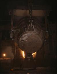 | Keywords: Allegheny Ludlum foundry ladle.jpg Ladle of molten iron is poured into an open hearth furnace for conversion into steel Allegheny Ludlum Steel Corp Brackenridge Pa Library of Congress Prints and Photographs Division Farm Security Administration - Office of War Information Collection http //hdl loc gov/loc pnp/fsac 1a35060 ~ 1941 Alfred T Palmer PD http //www loc gov/rr/print/res/072_fsac html <gallery>File Ladle of molten iron is poured into an open hearth furnace for conversion into steel Allegheny Ludlum Steele Corp Brackenridge Pa Note the safety latch on the crane hook jpg</gallery> LOC-image fsac 1a35060 Ladles metallurgy Allegheny Ludlum PD-USGov |