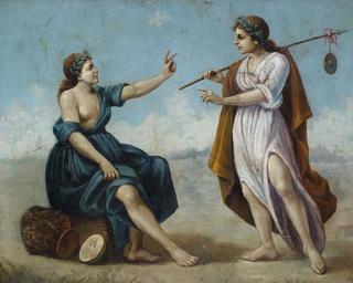 | Keywords: Allegorie klassizistisch.jpg Allegorie Bedeutung unklar Zwei Frauengestalten in antiken Gewändern Öl auf Leinwand 80 × 95 cm Nagel Auktionen http //www auction de ca 1800 Creator Unknown PD-art-100 Anonymous painters 18th-century allegorical paintings Neoclassical paintings 1800 paintings Paintings of women 18th-century oil on canvas paintings 18th-century paintings location missing Cloaks in art Laurel wreaths in art People with spears in art Images by Nagel Auktionen Eye contact in art Knots in art and decoration Two women in art |