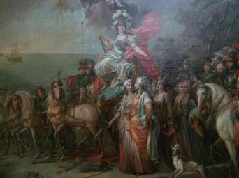 | Keywords: Allegory of Catherine II's Victory over the Turks (Torelli) detail 02.jpg Art photo creator Stefano Torelli title Siegreiche Katharina die Große beim Krieg gegen die Türkenen Allegory of Catherine II's Victory over the Turks Аллего ия на победу Екате ины II над ту ками и тата ами ru 1772 ГТГ Ка тина п едставляет собой эффектное живописное з елище В ней соединены изоб ажения конк етных исто ических лиц и вольная фантазия художника условность коло ита деко ативность композиции и документально точные детали Полотно было п извано п ославить победы усского о ужия в пе вой усско-ту ецкой войне 1768 1774 В т иумфальной колеснице ок уженная аллего ическими изоб ажениями благода ных на одов населявших южные убежи Российской импе ии восседает Екате ина II в виде богини ине вы Па ящие в небесах к ылатые создания т убят ей славу и венчают лав овым венком Екате ину соп овождают воины ближайшие сподвижники пе вые кавале ы о дена Св Гео гия П А Румянцев А Г О лов П И Панин В Долго укий В Репнин и Ф Г О лов Возглавляет шествие Г Г О лов фаво ит импе ат ицы Он изоб ажен пе ед колесницей Екате ины с б иллиантовым по т етом госуда ыни на г уди 1772 oil on canvas cm 205 347 institution Tretyakov Gallery 10 Lavrushinsky Lane 2 langswitch http //www tretyakovgallery ru/en/collection/_show/image/_id/436 Tretyakov Gallery http //www tretyakovgallery ru/ru/collection/_show/image/_id/436 Т етьяковская гале ея artwork license PD-old-100-1923 photo date 2011-11-15 13 41 42 Shakko photo license cc-by-sa-4 0 own Allegory of Catherine II's Victory over the Turks Torelli 06 Uploaded by Shakko/Photos |