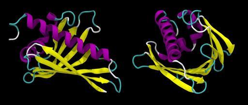 | Keywords: Allergen Betv1A 1QMR.jpg en ribbon model of Bet v 1-A from two sides after PDB 1QMR Ref cite journal Holm J Gajhede M Ferreras M et al Allergy vaccine engineering epitope modulation of recombinant Bet v 1 reduces IgE binding but retains protein folding pattern for induction of protective blocking-antibody responses J Immunol 173 8 5258 “67 2004 October 15470071 Created with VMD own Ayacop 2010-10-06 Allergology Plant proteins | ||||