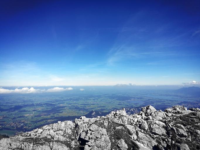 Keywords: allgäu mountains sky blue clouds hiking stone hell beautiful day walk idyll rest nature horizon foresight distant autumn sun