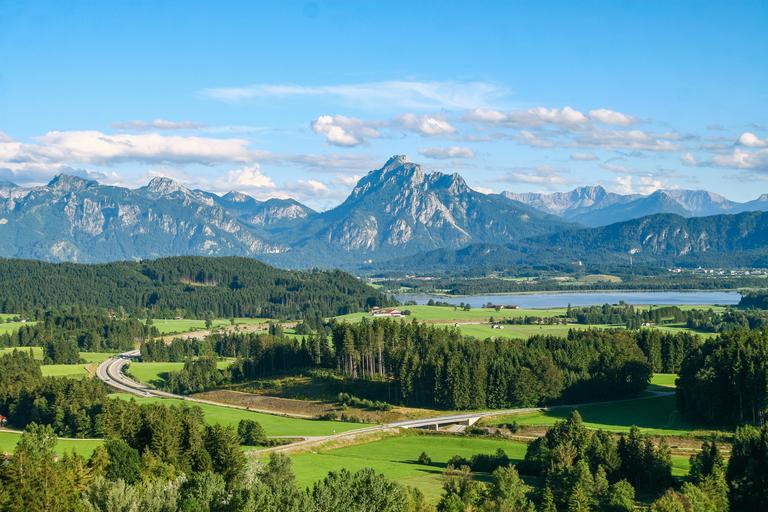 Keywords: allgäu ostallgäu bavaria mountains mountain range tegelberg säuling bavarian alps alpine nature landscape forest summer idyll horizontal germany meadow europe trees lake in the free idyllic green