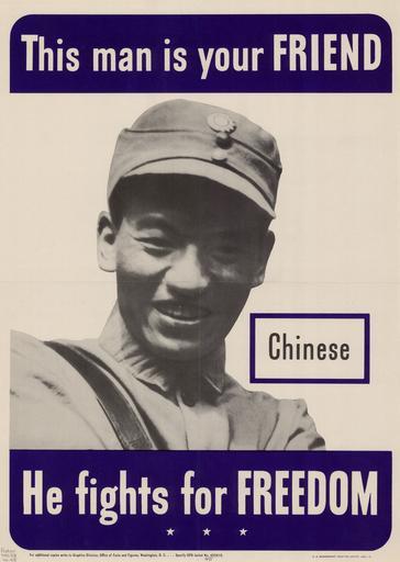Keywords: Allied Chinese.jpg en An American World War II propaganda poster The poster reads This man is your FRIEND Chinese He fights for FREEDOM zh-cn 美国二战时 宣传画,上书 这个人是你的 友 中国人 他为自由 战 http //digital library unt edu/ark /67531/metadc233/ USA GOVERNMENT 1942 PD-USGov This Man Is Your Friend He Fights For Freedom Sino-American military ties Relations of the Republic of China and the United States |