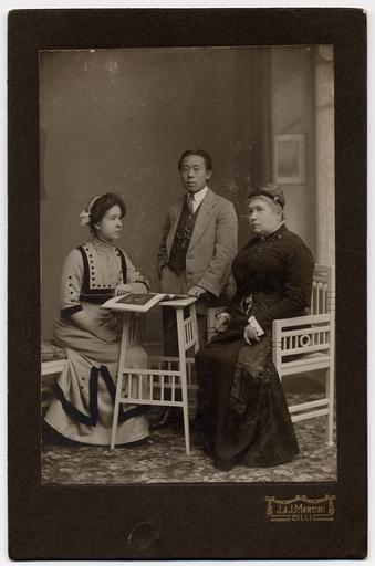 | Keywords: Alma M. Karlin z zaročencem Hsu Singjung Lungom in materjo.jpg Alma M Karlin z zaročencem Hsu Singjung Lungom in materjo s 1910 http //www ugm si/dogodki/predavanje-alma-karlin-in-skrivnostna-kitajska-2398/ J J Marini Celje PD-Slovenia Alma Karlin 1910s portrait photographs 20th-century group portrait photographs from Slovenia Photographs by Julija and Josef Martini | ||||