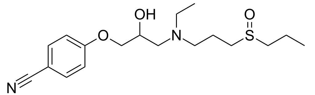 Keywords: Almokalant.svg Chemical structure of almokalant Own 11 42 19 July 2011 UTC Ed Edgar181 Nitriles Phenol ethers Amino alcohols Sulfones