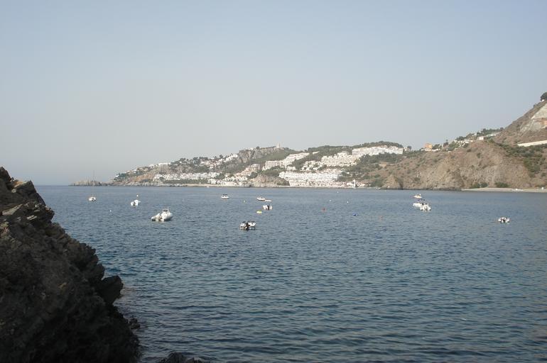 Keywords: almuñecar landscape sea lake water mountains cliffs boats summer