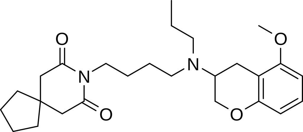 Keywords: Alnespirone.svg en 2D structure of anxiolytic chemical alnespirone S-20499 Own Harbin 2009-08-30 Serotonin receptor agonists Piperidines Benzodihydropyrans