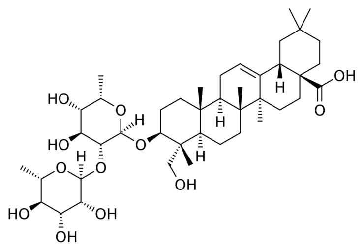 Keywords: Alpha-hederin.svg Chemical structure of alpha-hederin Own 17 35 17 July 2016 UTC Ed Edgar181 Saponins Triterpenes Glycosides