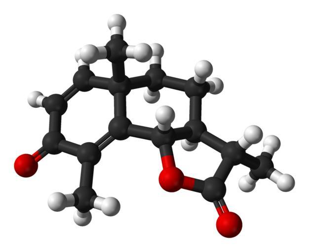 Keywords: Alpha-santonin-from-xtal-3D-balls.png Ball-and-stick model of the α-santonin molecule C<sub>15</sub>H<sub>18</sub>O<sub>3</sub> X-ray crystallographic data from cite journal Acta Cryst C41 12 December 1985 1779-1781 10 1107/S0108270185009428 Structure of α-santonin C Kitabayashi Y Matsuura N Tanaka Y Katsube and T Matsuura Image generated in http //accelrys com/products/discovery-studio/visualization/discovery-studio-visualizer html Accelrys DS Visualizer Own 2008-09-10 Ben Mills Benjah-bmm27 Images by Ben Mills Ball-and-stick models Santonin
