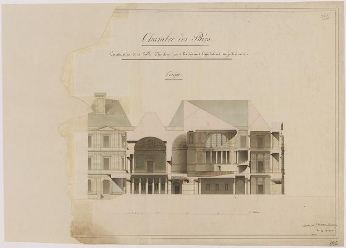 | Keywords: Alphonse de Gisors - Construction d'une salle définitive pour les séances législatives et judiciaires - Google Art Project.jpg Pour la Chambre des Pairs l'architecte Alphonse de Gisors construit une salle des séances en repoussant la façade du Palais du Luxembourg d'une trentaine de mètres sur le jardin Cette salle est aménagée en tribunal pour les procès de la Cour des pairs 1836 Artist /collection/senat/ Sénat 480 1834 drawing Construction d'une salle définitive pour les séances législatives et judiciaires 580 Inscription _Signed_and_Dated Not on View Drawing special url_id WgF5xOVBQki1jg PD-old-100-1923 1866 Google Art Project works by Alphonse de Gisors Architectural drawings of the Palais du Luxembourg |