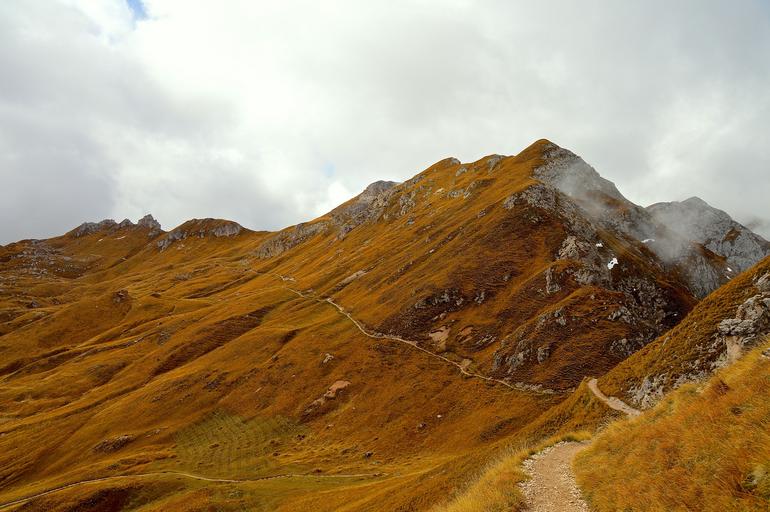Keywords: alpine mountains dolomites peitlerkofel rock clouds leisure summer relax holiday landscape sun relaxation alm summer holiday wellness