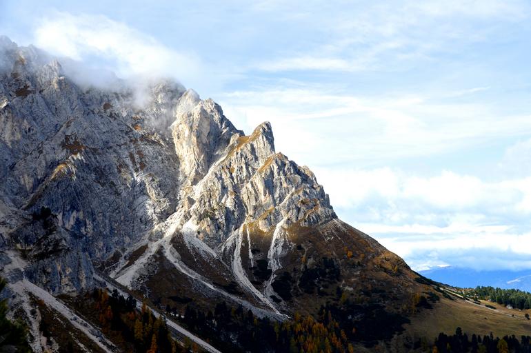 Keywords: alpine mountains dolomites peitlerkofel rock clouds leisure summer relax holiday landscape sun relaxation alm summer holiday wellness