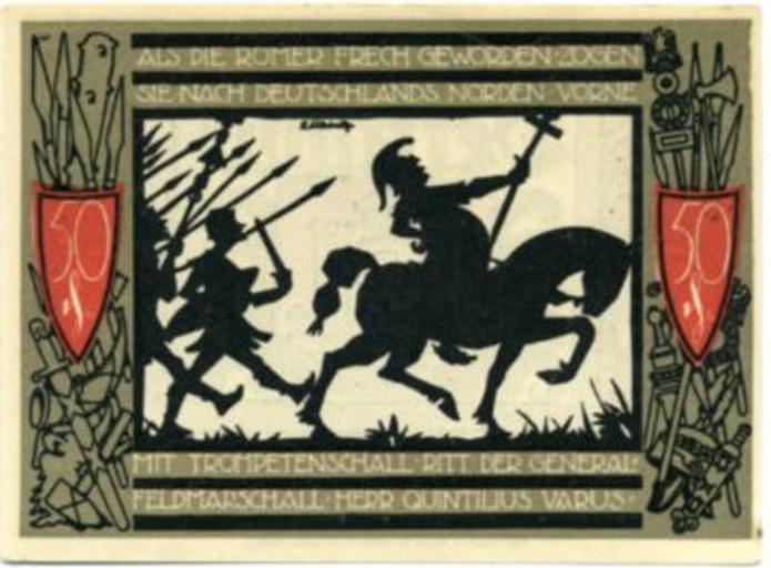 | Keywords: Als die Römer frech geworden - Notgeld der Stadt Detmold.jpg  Als die Römer frech geworden Notgeld der Stadt Detmold historisches offizielles Zahlungsmittel Public Domain de wikipedia Septembermorgen CommonsHelper 2005-09-29 Rabe wikipedia de PD-old original upload log page de wikipedia Als_die_R C3 B6mer_frech_geworden_-_Notgeld_der_Stadt_Detmold jpg 2005-09-29 20 38 Rabe 361×266× 26022 bytes <nowiki> Als die Römer frech geworden Notgeld der Stadt Detmold historisches offizielles Zahlungsmittel Public Domain</nowiki> Notgeld of Detmold Battle of the Teutoburg Forest Banknotes with a face value of 50 |