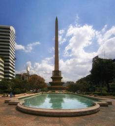 Keywords: altamira mexico monument statue pond reflections buildings city cities urban plaza sky clouds skyline