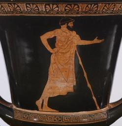 Keywords: Altamura Painter - Red-Figure Calyx Krater - Walters 48262 - Side B Detail.jpg The scene on this krater depicts another milestone in the life of a young man At the culmination of years of training a warrior stands beside the family altar preparing to leave for war He wears a short tunic under a cuirass breastplate and holds his spear in his left hand A young woman on the right readies his shield and stretches out her hand to pass his helmet across the altar A krater is a large wide-mouth vessel used for mixing water and wine; if the handles are in the low position seen here it is called a calyx krater between 470 460 BC Classical terracotta cm 35 9 35 8 accession number 48 262 8994 Thomas B Clarke New York until 1925 Thomas B Clarke Sale American Art Gallery New York January 7-10 1925 no 625 Henry Walters city Baltimore Walters Art Museum Henry Walters Acquired by Henry Walters 1925 Heroes Mortals and Myths in Ancient Greece The Walters Art Museum Baltimore; Frist Center for the Visual Arts Nashville; San Diego Museum Of Art San Diego; Alexander S Onassis Public Benefit Foundation USA New York 2009-2011 place of origin Athens Greece Walters Art Museum license Ancient Greek red-figure pottery in the Walters Art Museum Altamura Painter Media contributed by the Walters Art Museum needs category review Media contributed by the Walters Art Museum needs artist update Costume in ancient Greece |