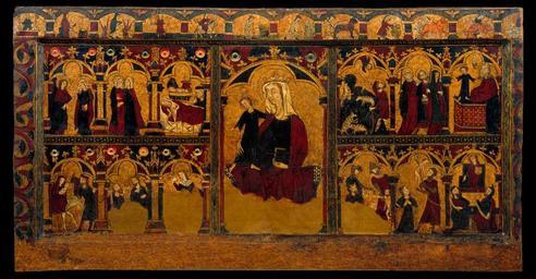 Keywords: Altar frontal of Jesus' childhood - Google Art Project.jpg 466155 Unknown /collection/museu-nacional-dart-de-catalunya/artwork/altar-frontal-of-jesus-childhood-unknown/573476/ author /collection/museu-nacional-dart-de-catalunya/ Museu Nacional d'Art de Catalunya - MNAC Barcelona 497131 http //www mnac cat/ 12/28/2011 4 37 31 PM /collection/museu-nacional-dart-de-catalunya/artwork/altar-frontal-of-jesus-childhood-unknown/573476/ 1326 Religion Tempera and gold leaf on wood True 908 573476 True 1350 Second quarter of 14th century /collection/museu-nacional-dart-de-catalunya/level/ground-floor/2552108/ Ground floor 3/24/2012 4 36 03 AM 004368-000 http //art mnac cat/fitxatecnica html;jsessionid inventoryNumber 004368-000 lang en Museu Nacional d'Art de Catalunya Painting 1320 1360 Arteta Navarra Provenance w1712 x h908 x d58 cm Second quarter of 14th century False 1 91760299625468 Object /collection/museu-nacional-dart-de-catalunya/level/ground-floor/2552108/room-19/598331/ Room 19 altar-frontal-of-jesus-childhood-unknown Altar frontal of Jesus' childhood a 1712 Plandiura Collection acquired 1932 004368-000 Tempera and gold leaf on wood Religion special url_id PQENykuYkecaBg PD-old-100 Romanesque antependium at MNAC Google Art Project works by unknown artist |