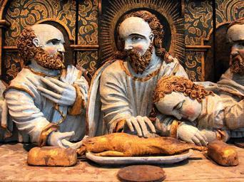 Keywords: Altertavle (Orebygårds Kapel).JPG Detalje fra altertavle Den sidste nadver i Orebygårds kapel Henrik Werner 1638 Nationalmuséet i København own 2012-12 Orf3us Orebygård altertavle PD-old-100