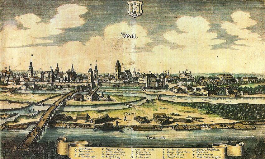 | Keywords: Altes Stadtbild Wels.jpg Mittelalterliche Stadtansicht von Wels scanned from the book Kurt Holter Gilbert Trathnigg Hrsg Wels von der Urzeit bis zur Gegenwart 2 Auflage Welsermühl Wels 1985 1649 siehe http //www aeiou at/aeiou history gtour topo/docs/30041 htm AEIOU scanned 24 8 2006 Matthäus Merian scanned by de Montag Public Domain Urheber 1650 verstorben PD-old-100 History of Wels 17th-century engravings Engravings of Topographia Austriacarum Austria in art by Matthäus Merian Engravings of Upper Austria |