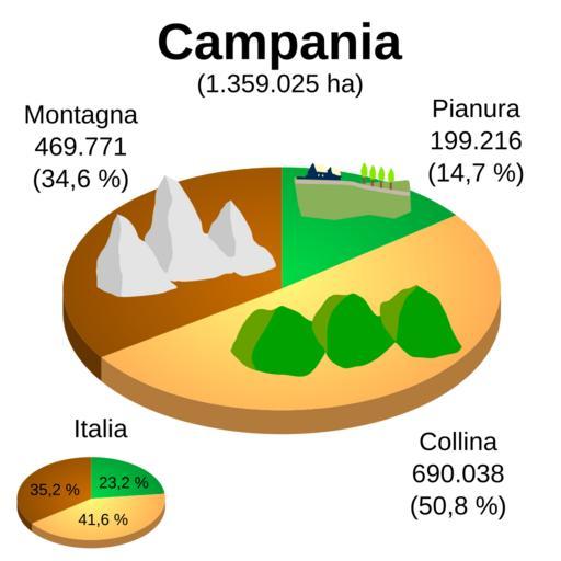 Keywords: Altimetria Campania.svg Ripartizione del territorio della regione per aree altimetriche Own 2008-03-16 Luigi Chiesa Own work all rights released Public domain Statistics of Italy Geography of Campania