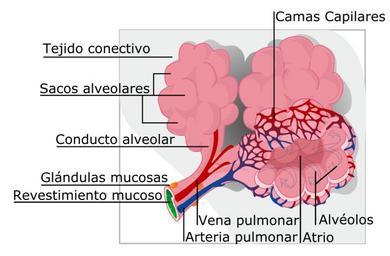 | Keywords: Alveolus diagram es.svg An alveolus plural alveoli from Latin alveus little cavity is an anatomical structure that has the form of a hollow cavity Mainly found in the lung the pulmonary alveoli are spherical outcroppings of the respiratory bronchioles and are the primary sites of gas exchange with the blood Alveolus_diagram svg 2010-08-09 16 14 UTC Alveolus_diagram svg LadyofHats derivative work User The Photographer/info <span class signature-talk >talk</span> Other versions/Alveolus diagram Add spanish labels The Photographer Alveolus_diagram svg translation possible The Photographer Original upload log This image is a derivative work of the following images File Alveolus_diagram svg licensed with PD-user 2007-12-13T19 49 05Z LadyofHats 418x312 126413 Bytes <nowiki> An alveolus plural alveoli from Latin alveus little cavity is an anatomical structure that has the form of a hollow cavity Mainly found in the lung the pulmonary alveoli are spherical outc</nowiki> Pulmonary alveolus Files by The Photographer |