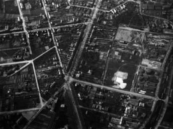 Keywords: Am Knie, Charlottenburg 1895.jpg Eine Ballonaufnahme von 1895 des Platzes žAm Knie heute Ernst-Reuter-Platz in der Stadt Charlottenburg heute Teil von Berlin mit Blickrichtung Westen Die Berliner Straße heute Straße des 17 Juni läuft vom unteren Bildrand zum žKnie und knickt ab dort heute Otto-Suhr-Allee Zum oberen Bildrand setzt die damals noch schmale Bismarckstraße fort Norden ist auf dem Bild auf der rechten Seite Den größten Teil nehmen die Villa Siemens und das Baugelände der späteren Physikalisch-Technischen Reichsanstalt ein Rechts der Landwehrkanal mit zahlreichen Kähnen; am Ufer das Gaswerk Charlottenburg A balloon shot at the square Am Knie at the knee now Ernst-Reuter-Platz in the city of Charlottenburg now part of Berlin viewing west Preus Museum Horten Norway<br/> Scanned from Janos Frecot Helmut Geisert Berlin in frühen Photographien 1857 “1913 Schirmer/Mosel Munich 1984 ISBN 3-88814-984-3 ca 1895 author Public domain 52 30 45 8 N 13 19 31 E heading W PD-old Ernst-Reuter-Platz Aerial views of Bezirk Charlottenburg-Wilmersdorf Charlottenburg in the 1890s |