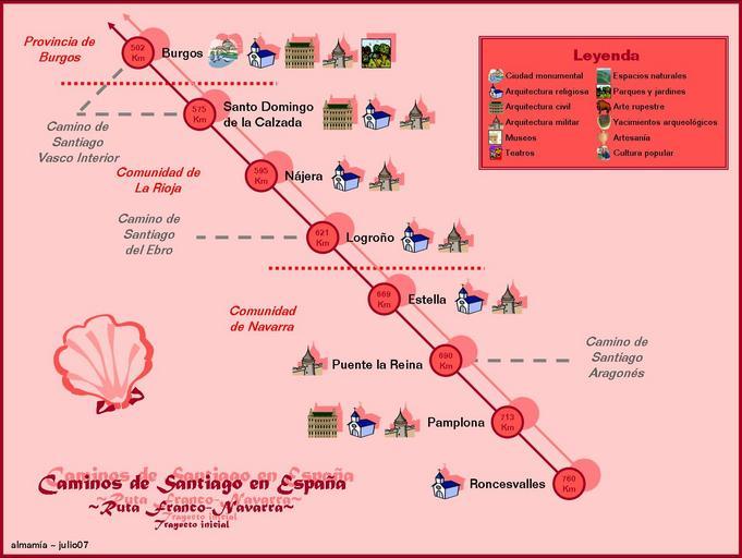 Keywords: AM-R06a-CaminoSantiagoFrancés.jpg Caminos de Santiago en España Ruta franco-navarra Tramo inicial Own 2007-07 almamía dominio público Watermark Way of Saint James in Spain Maps of Way of Saint James