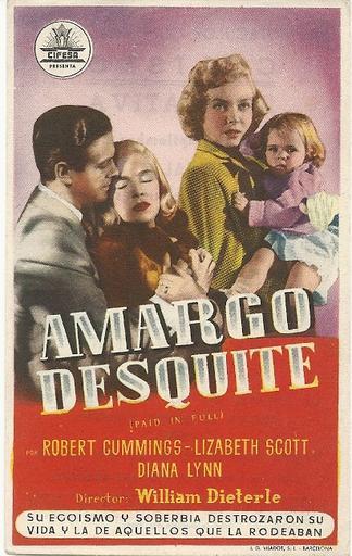 Keywords: cine clasico classic movies melodrama carteles programas de mano programasdemano drama american films americanfilms poster text 1950. Paid in Full 1950. Paid in Full